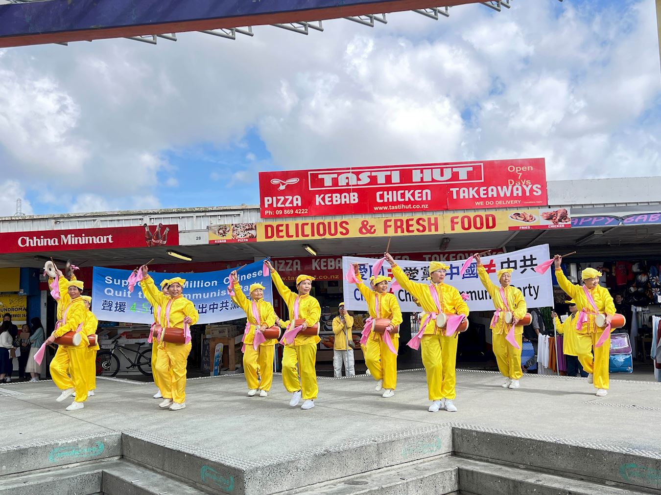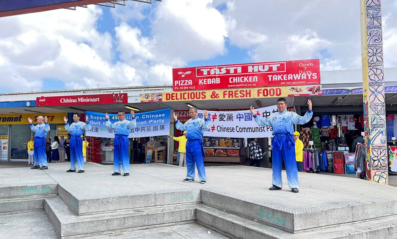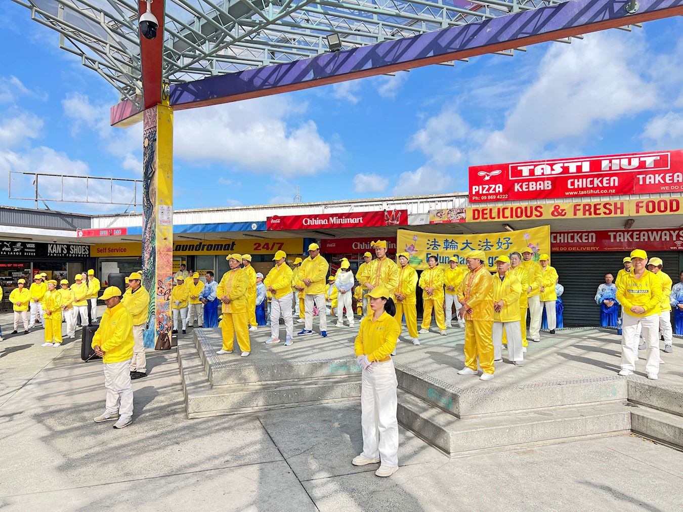 ![]() 图1:二零二五年九月二十七日星期六,新西兰奥克兰法轮功学员在奥塔瓦市场(Otara market)集体炼功。 |