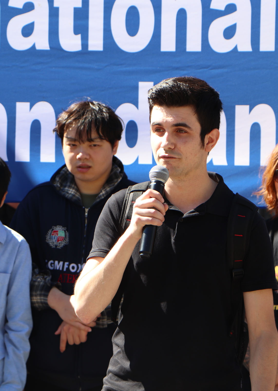图7:法轮功西人学员博格丹在集会上发言