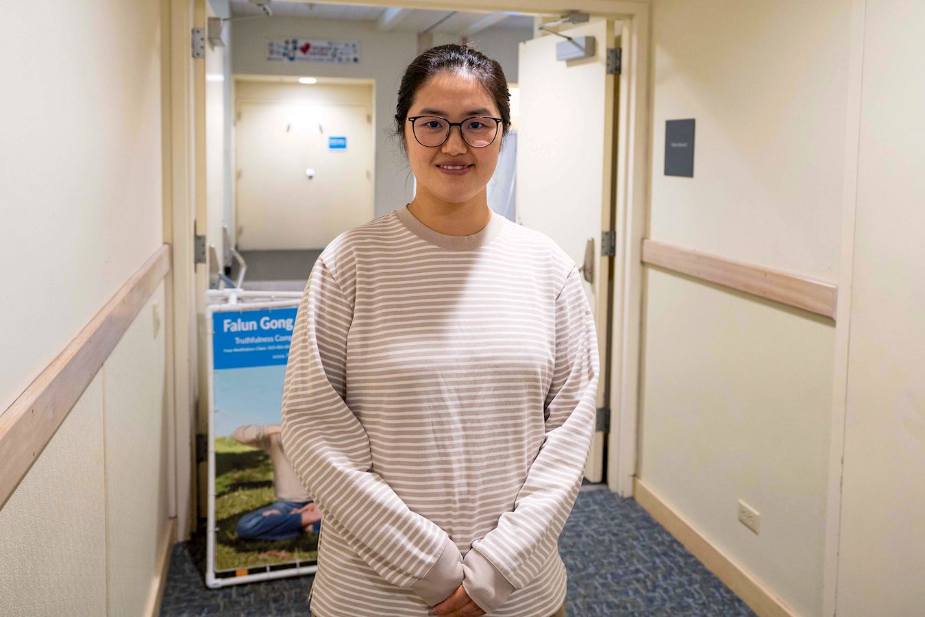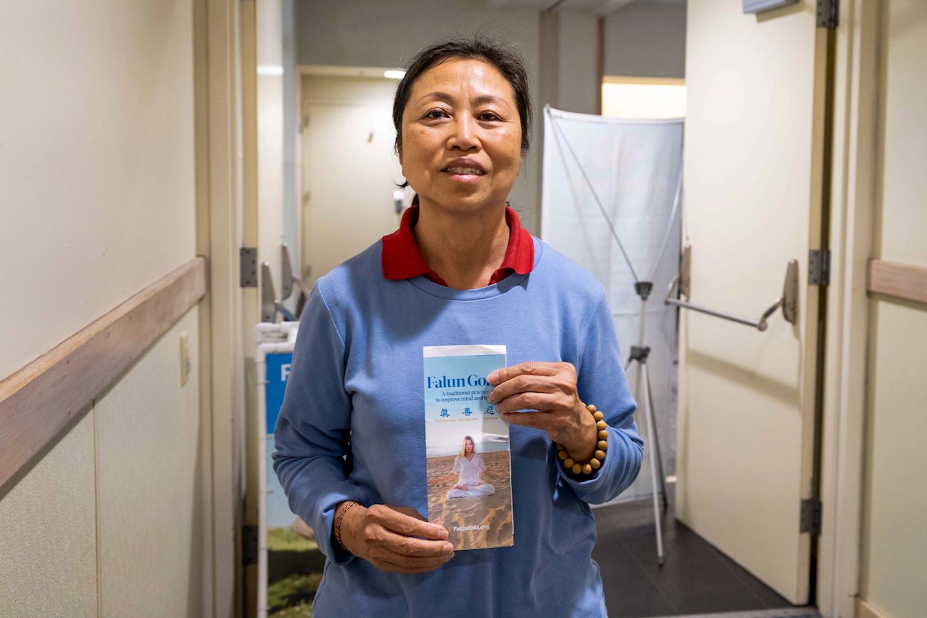 来美国后,她继续炼功,“我现在已经恢复到生病前的状态了。所以我就一直在炼法轮功。今天来这里学功,想纠正动作。”