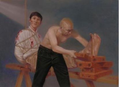 ![]() 中共酷刑演示:老虎凳 | ![]() 强行按手印 |