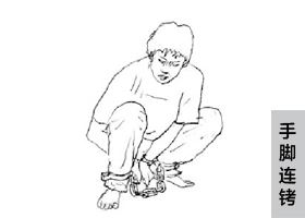 ![]() 中共酷刑演示:暴力灌食 | ![]() 中共酷刑示意图:手脚连铐 |