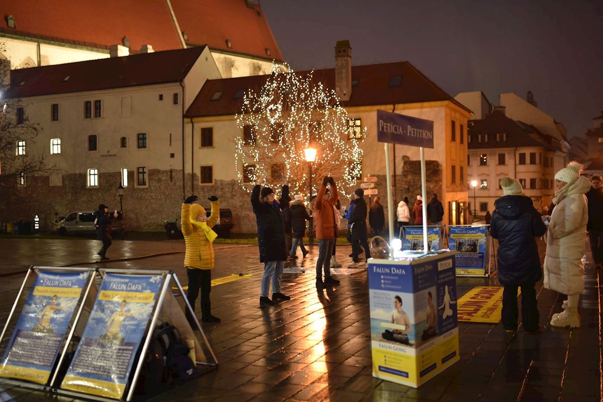 【明慧网二零二六年一月二日】二零二五年十一月二十九日至十二月二十一日,斯洛伐克法轮功学员在周末于尼特拉(Nitra)和布拉迪斯拉发(Bratislava)两座城市举办了多场信息日活动,向民众讲述中共迫害法轮功的侵犯人权暴行。