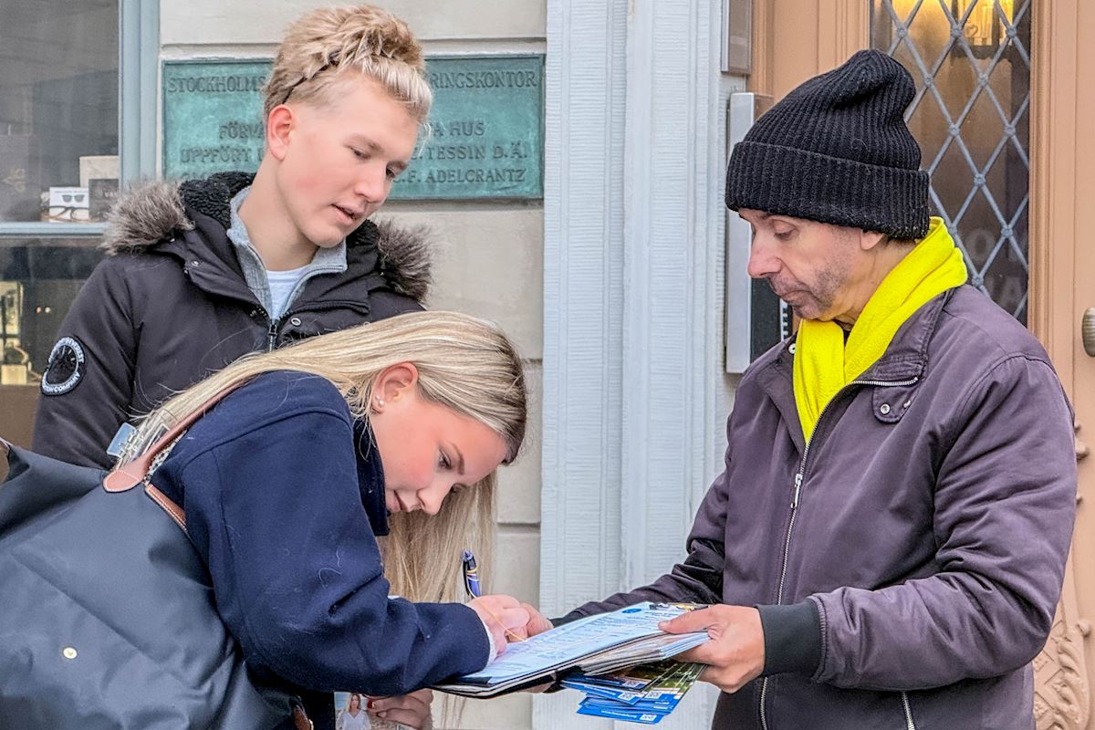 据活动组织者、法轮功学员约翰(Johan)介绍,自一九九九年中共开始迫害法轮功至今,迫害仍在继续,目前即将进入第二十七个年头了。对他们而言,长期坚持向瑞典各界传播真相,不仅是和平反迫害的呼声、对正义和良知的呼唤,也是在传递着这群信仰真、善、忍做好人的人,和平理性反迫害的勇气与坚韧。他呼吁国际社会及各界正义人士继续关注法轮功,希望更多人都来了解了解法轮功真相,帮助共同制止迫害。